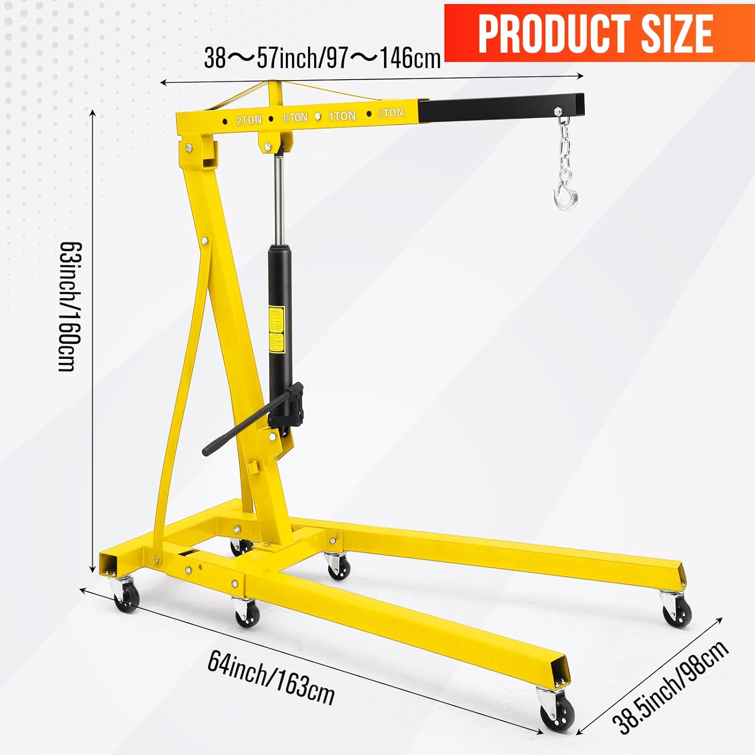 - STRONG 2-TON CAPACITY FOR BIG JOBS: Our hydraulic engine hoist can safely lift up to 2 tons (4000 lbs), making it ideal for pulling engines, axles, or even helping with other big workshop lifting tasks