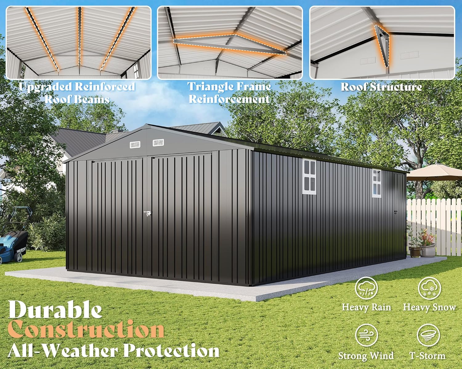 - Durable Construction: The galvanized steel metal shed is 0.25mm thick, added upgraded stabilized structure to withstand winds and rainfall